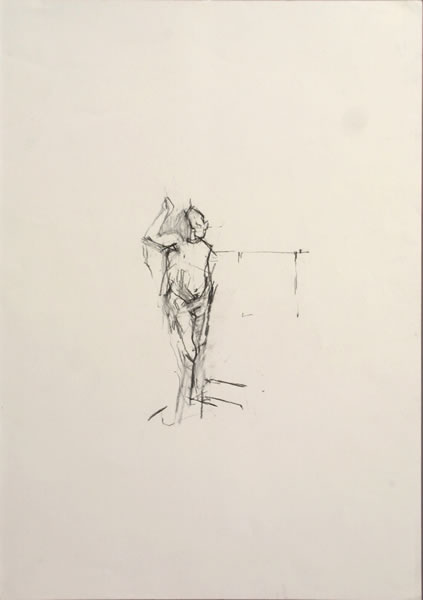 The first and most important task in beginning to draw the figure well is learning to respond to the impact of the whole figure, or what has come to be called "the gesture." Gesture drawing is not a technique, it's a shift in attitude. Daniel Mendelowitz, in his influential book, A Guide to Drawing, characterizes the practice of gesture drawing, quite simply, as a search. When we are in a searching frame of mind we are open to what we might find, having no concept of what that will be before we start. Consequently we adopt a looser, more free-ranging mark. Gesture drawing is like asking a lot of questions and leaving the question marks on the page. Each line we draw compounds with other lines and assists us as we calibrate our movements toward a final resolution.
